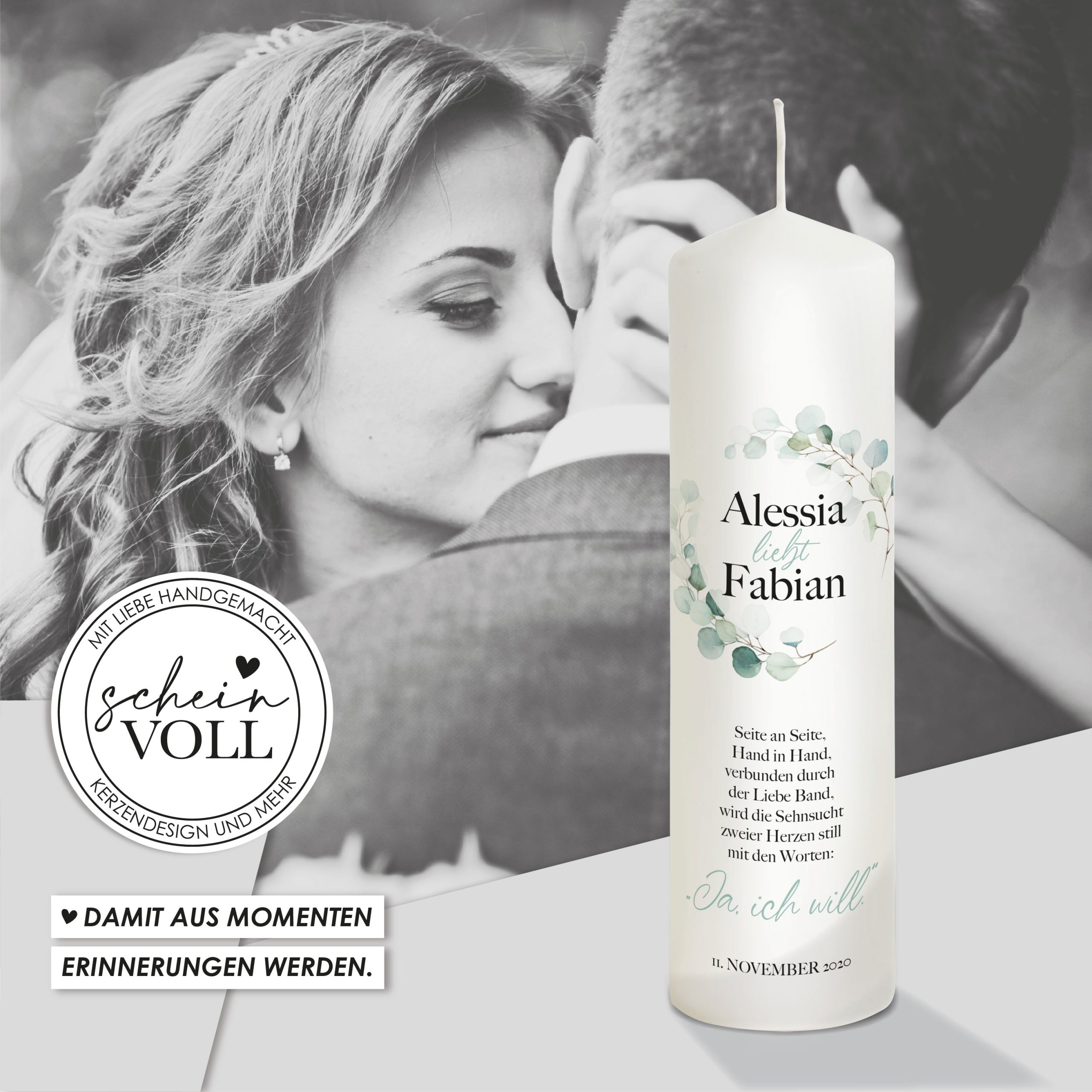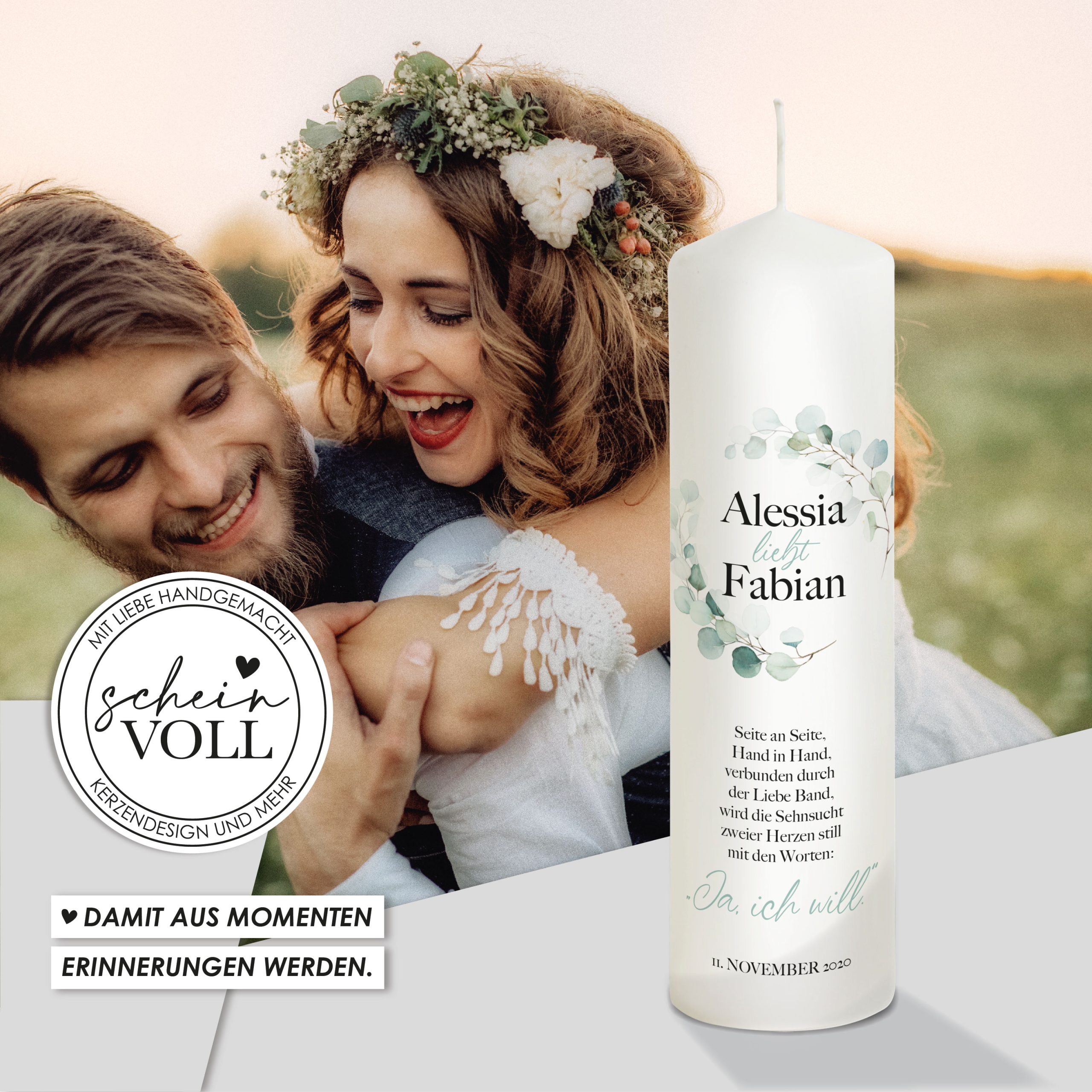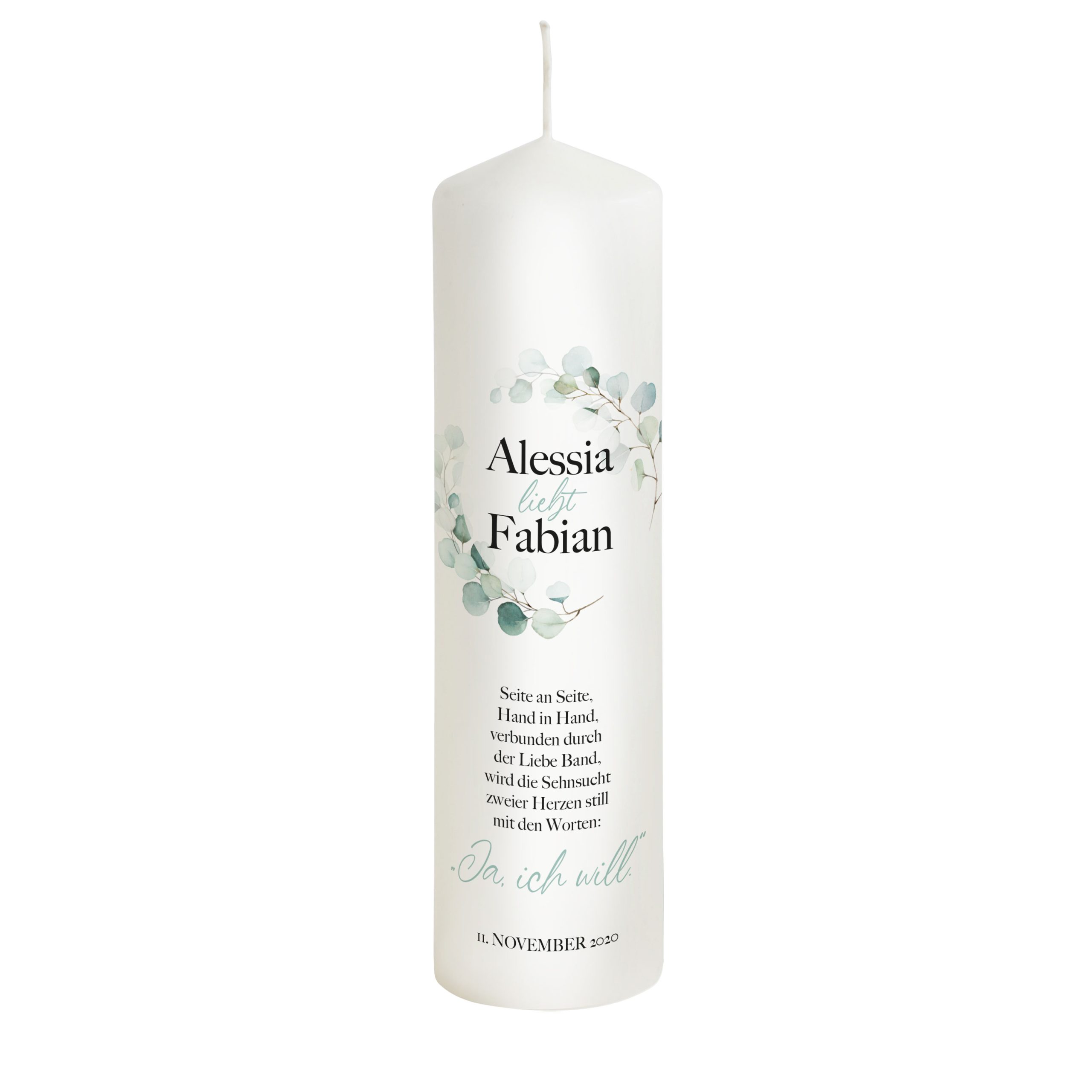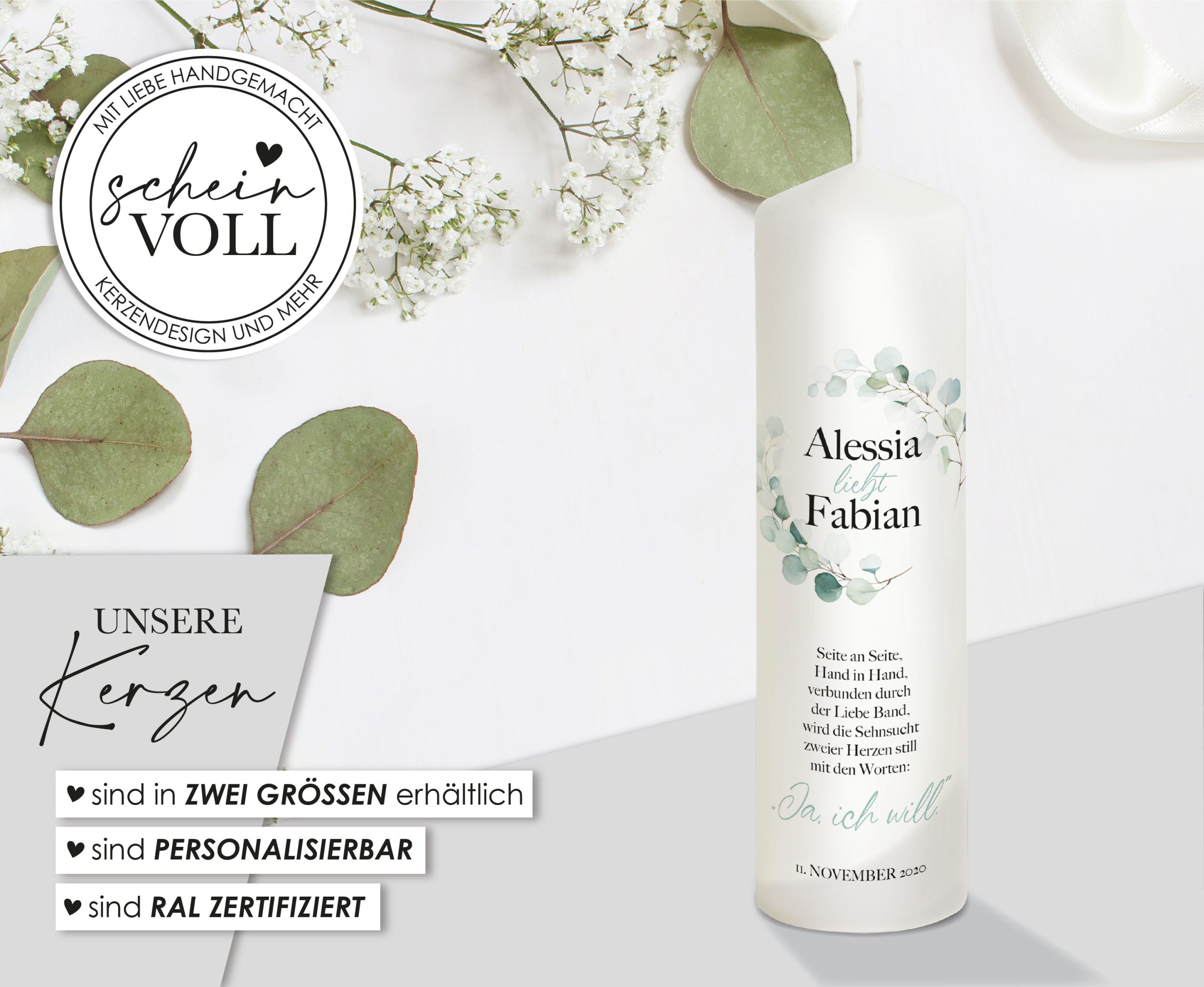 Stilvolle Hochzeitskerze Eukalyptus – Modell „Ja ich will“ in