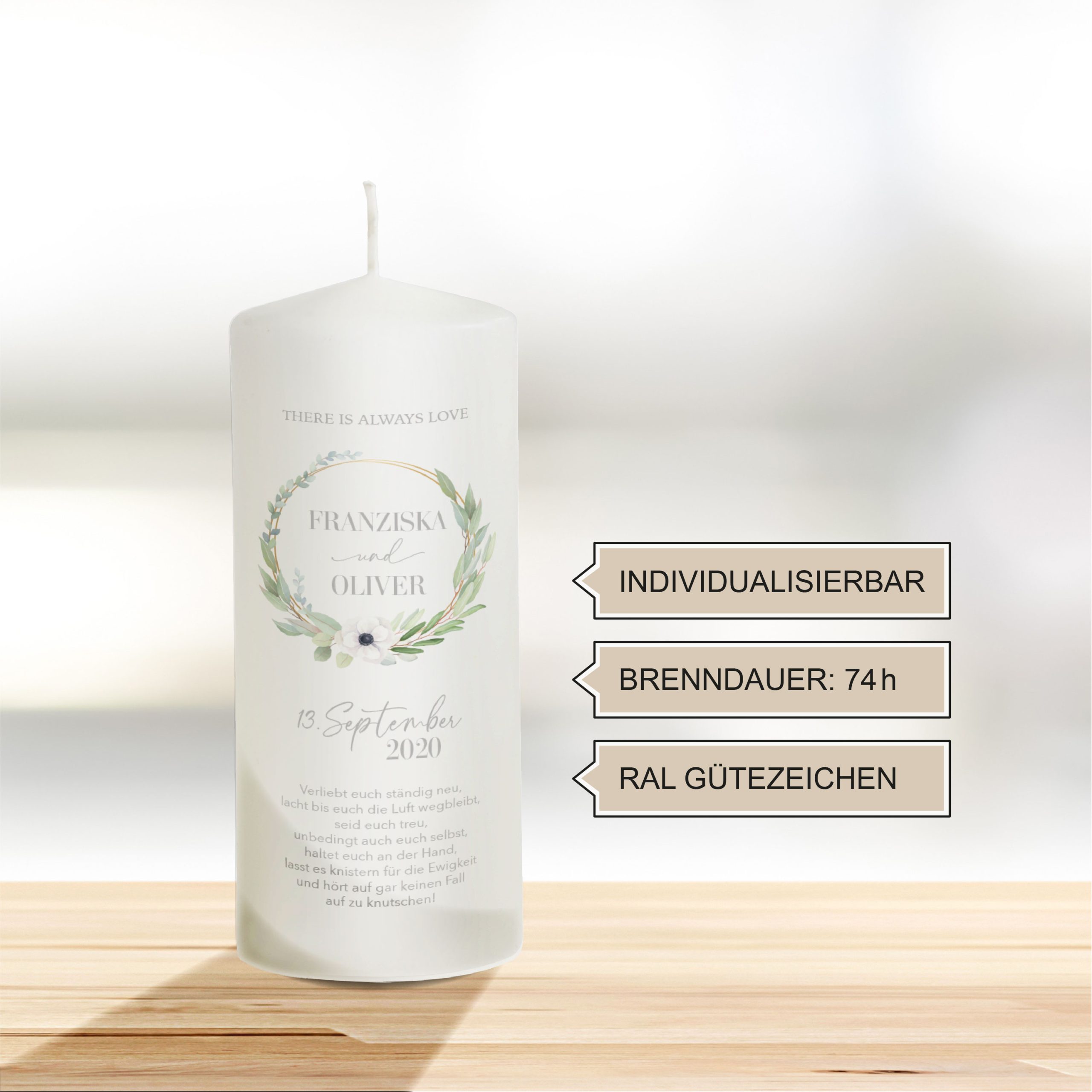 Ja 🤍 Die Kerze wird individuell mit euren Namen, eurem Hochzeitsdatum