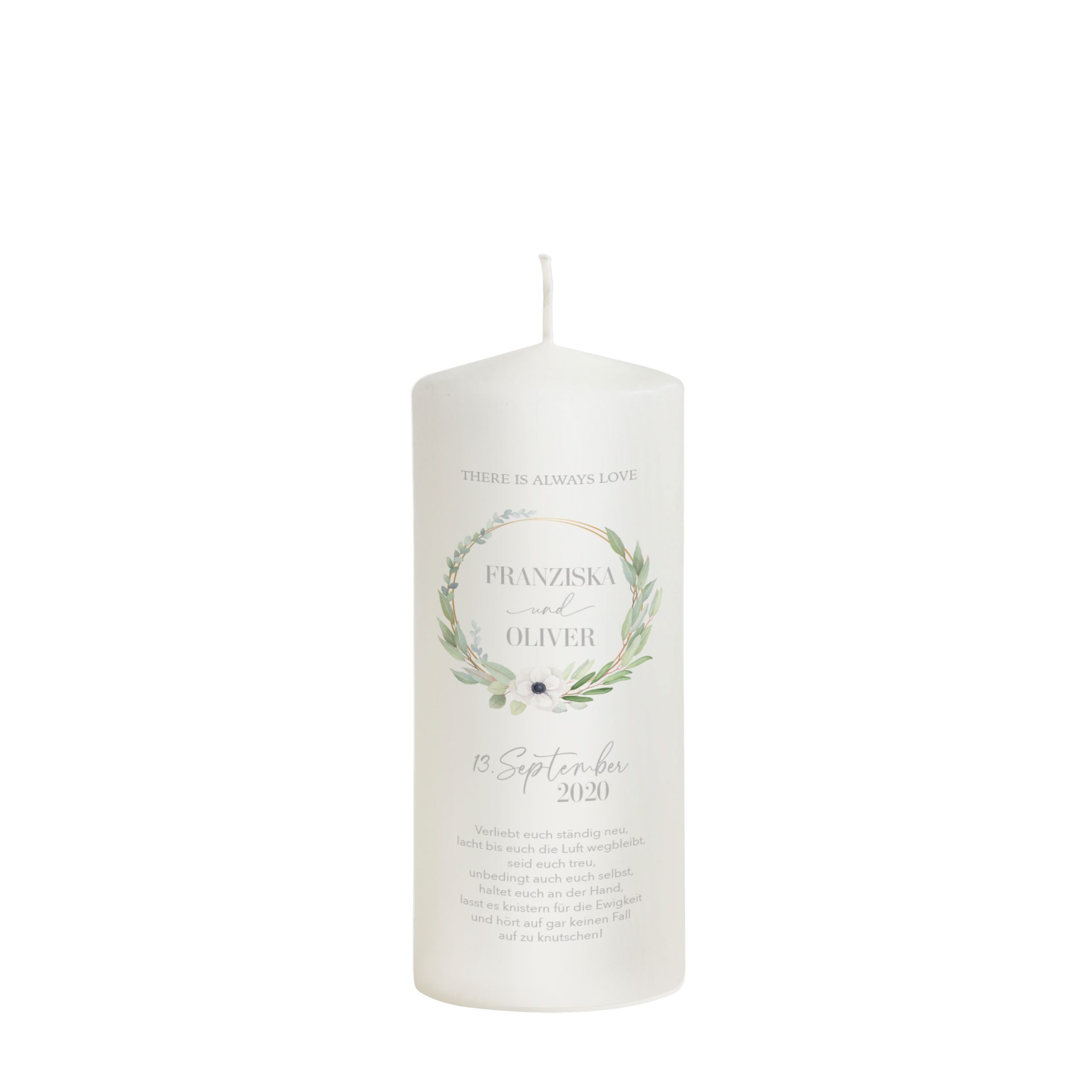 jeden Tag neu gelebt wird. Die perfekte Botschaft für eine Traukerze.