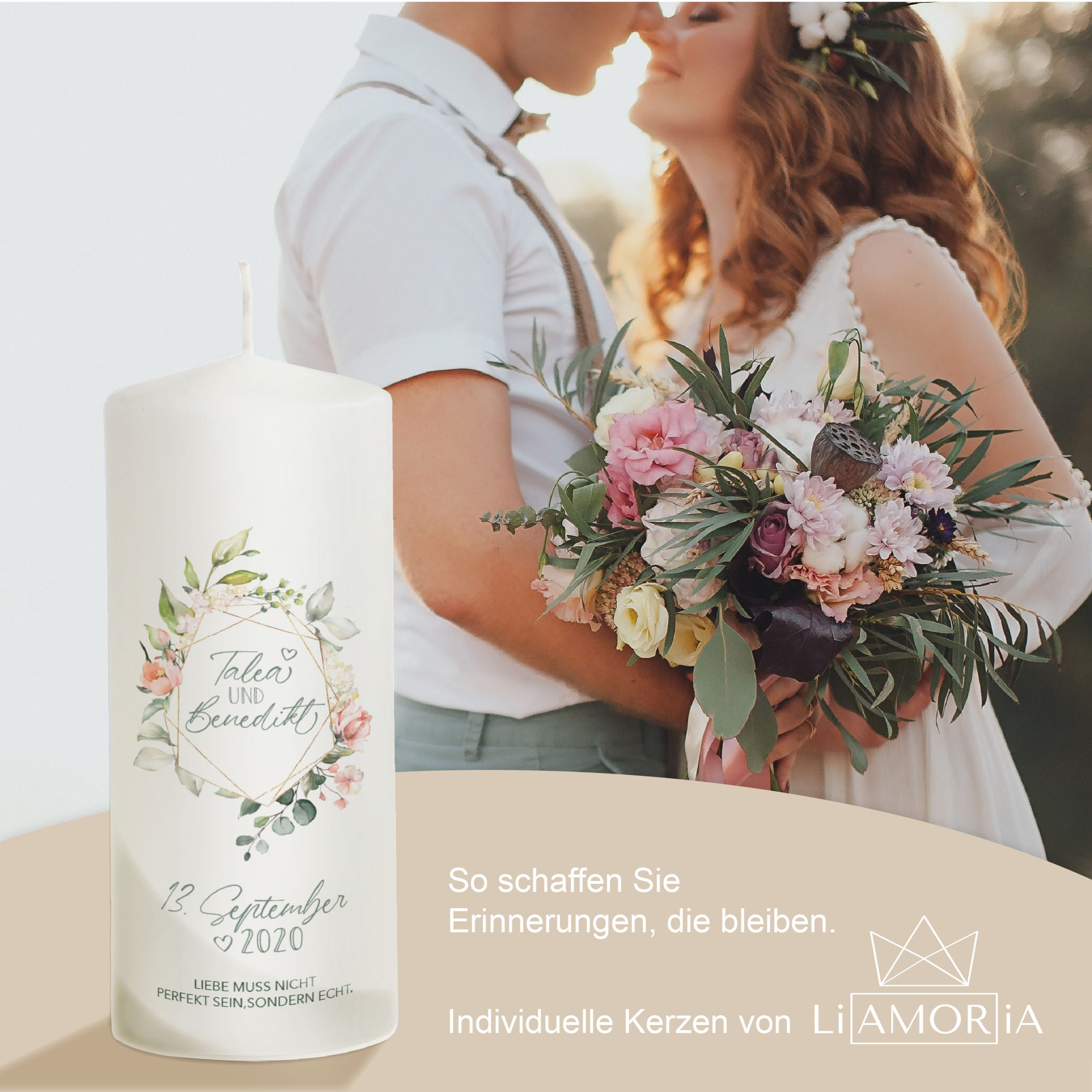 Wird die 20 cm Hochzeitskerze „Echte Liebe“ auch personalisiert? ✍️