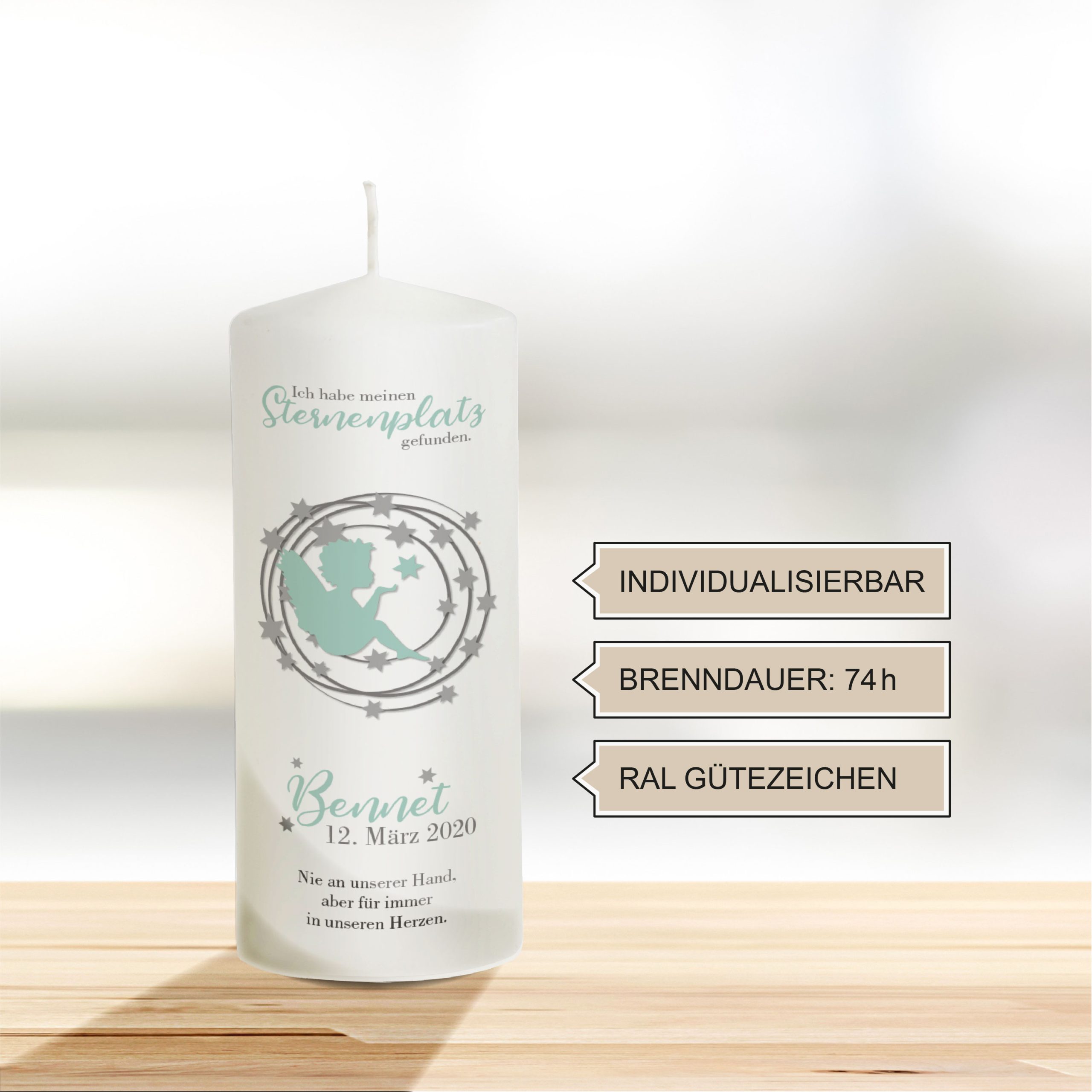 Ein kleines Engellicht für jeden Tag – Sternenkind-Trauerkerze 20 cm