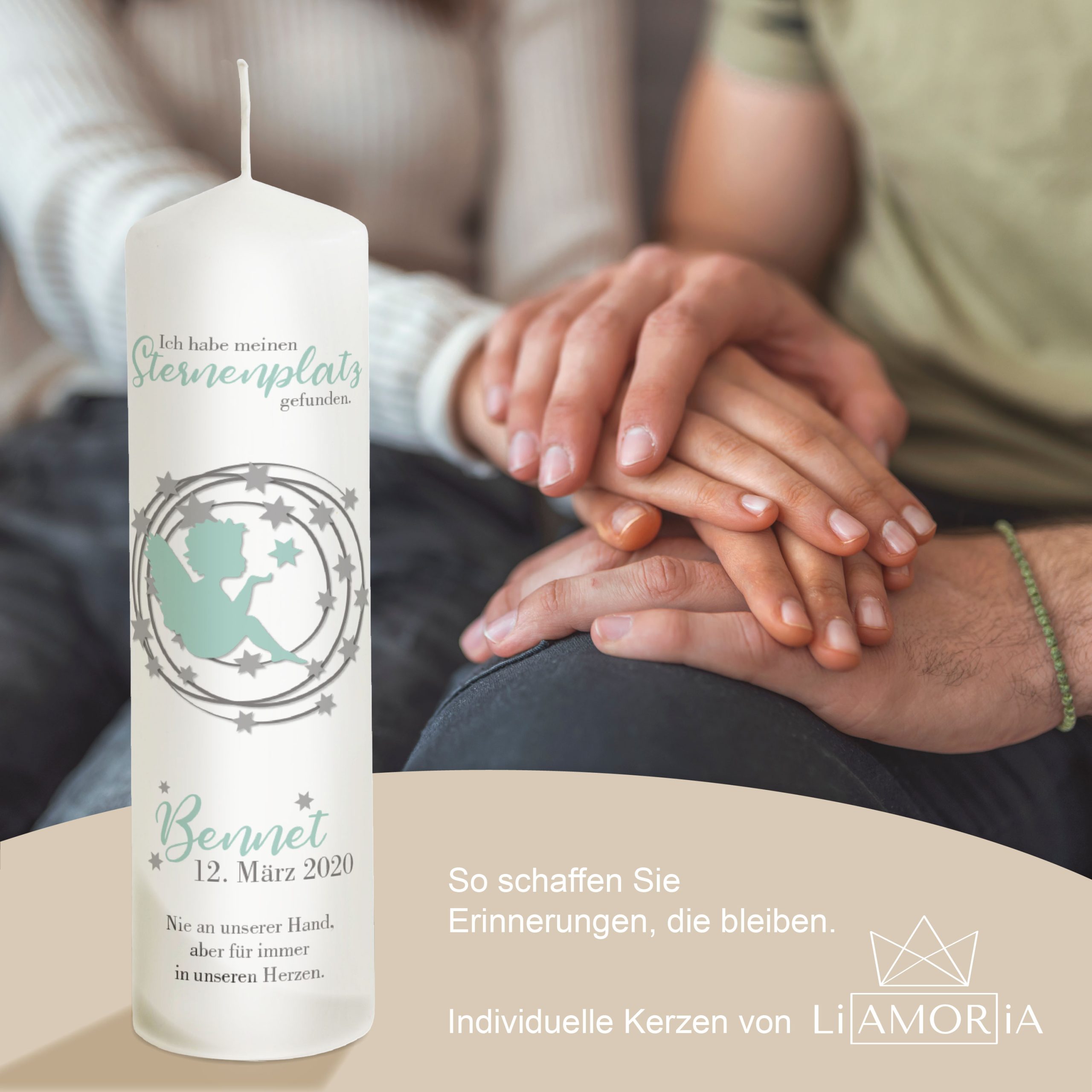 Ja, die Sternenkind-Kerze kann mit Name, Datum und einem persönlichen Spruch gestaltet werden. So entsteht eine individuelle Gedenkkerze für euren kleinen Engel, die eure ganz eigene Geschichte und Liebe sichtbar macht.